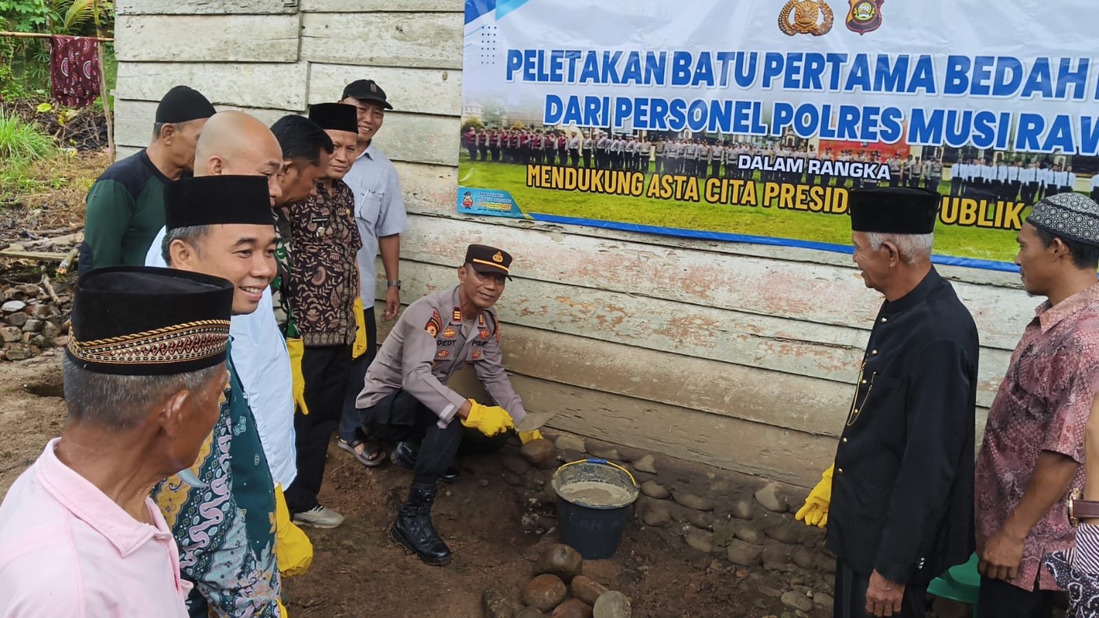 Polsek STL Ulu Terawas, Polres Musi Rawas, melaksanakan kegiatan Peletakan Batu pertama Bedah Rumah dalam rangka mendukung Asta Cita Presiden Republik Indonesia di Dusun 5 Desa Babat, Kecamatan Stl Ulu Terawas, Jumat (30/1/2026).