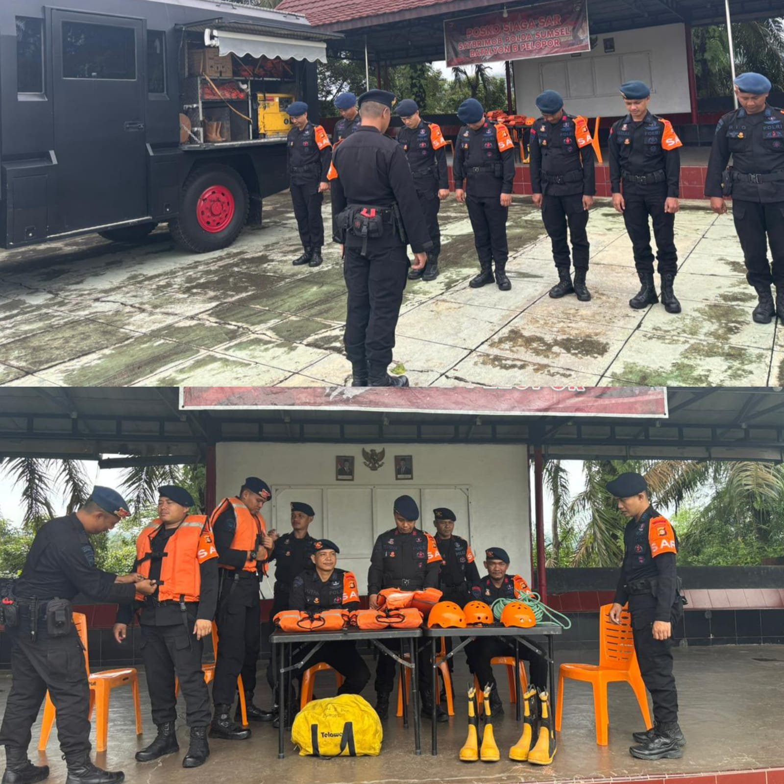 Komandan Batalyon B Pelopor Satbrimob Polda Sumatera Selatan, AKBP Andiyano, S.K.M., M.H., menyampaikan bahwa kegiatan Siaga SAR merupakan bagian dari kesiapan rutin satuan dalam mendukung tugas-tugas kemanusiaan.
