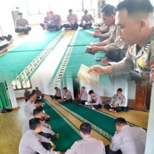 LUBUKLINGGAU — Dalam rangka membentuk karakter personel yang berintegritas serta memiliki ketahanan mental yang baik, Satuan Brimob Polda Sumatera Selatan Batalyon B Pelopor melaksanakan kegiatan Pembinaan Rohani dan Mental (Binrohtal) di Musholla At-Taqwa Mako Batalyon B Pelopor, Kamis (12/02/2026).