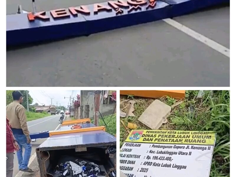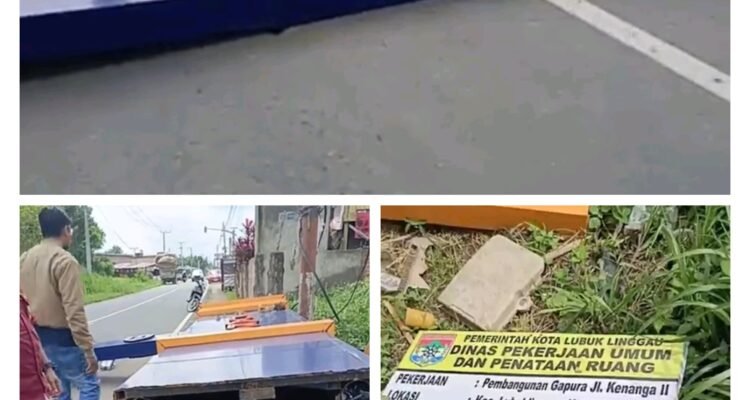 Peristiwa Tugu Rp200 Juta Roboh Dihantam Truk angkutan Kerupuk, Dugaan Proyek Asal Jadi.Lubuk Linggau, News|13/01/202614/01/2026oleh Redaksi LUBUKLINGGAU — Seguntang.com- Sebuah tugu yang baru tiga minggu selesai